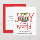 Rolig, färgglad JOY TO THE WORLD julgröt budgetkort. Texten säger JOY TO THE WORLD och är baserad på den populära kristna julpsalmen med samma namn. O i JOY är utbytt mot en festlig plum pudding, med ett urval av FLAGGOR FRÅN HELE VÄRLDEN. Det finns en anpassningsbar hälsning på framsidan och ett meddelande på baksidan. Du kan skapa din egen text genom att anpassa med ditt namn och formulering. Glöm inte att lägga till kuvert om det behövs!