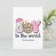 Sprid högtidlig glädje med en lekfull twist på traditionen! Detta retroinspirerade "Glädje åt världen" julkort har djärv randig bokstavsstil, en tomtehatt och en färgrik disko boll-ornament för en touch av retro glamour. Baksidan har en platshållare för foto - perfekt för att visa upp din familj eller ett speciellt julminne. Ett glatt och särpräglat sätt att fira säsongen med stil!