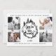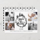 Fira den magiska och festliga högtiden med våra anpassade julkort. Vår moderna julrutnätscollage-design har vår "Glädje åt världen"-design med en stiliserad jordglob med tallar, stjärnor och renar utformade i en svart cirkelformad vapensköld i mitten. En modern fyrkantig fotokollage för dina egna familjefoton under julen. Baksidan har en modern minimalistisk vit och enkel tallmönsterdesign. Alla illustrationer som ingår i detta svart-vita moderna julkort med flera foton är handritade originalkonstverk av Moodthology. Du kan anpassa textstorlek, textfärg, typsnitt och layout efter dina egna designpreferenser.