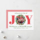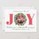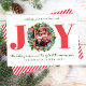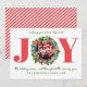 Skicka fred, kärlek och glädje med detta moderna julkort med en festlig ”GLÄDJE”-design, där ditt foto är inramat i en akvarell-julkrans. Röda godisrandiga ränder på baksidan ger en lekfull, koordinerad touch. Elegant grönt skrivstil och tall-element knyter ihop det hela till en glad, modern julhälsning.