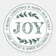 Julpresentetikett klistermärke med ditt personliga meddelande och namn i mörkgrön stilfull typografi med texten GLÄDJE i handskriven typografi med en stilren touch av rustik lövverk. Lägg bara till din personliga julhälsningstext. Exklusivt designad för dig av Happy Dolphin Studio. Om du behöver hjälp eller matchande produkter, vänligen kontakta oss via vår butikschatt. God jul och Merry Christmas!