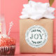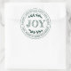 Julklappsetikett med din personliga hälsning och namn i mörkgrön stilfull typsnitt med texten GLÄDJE i handskriven typsnitt med en stilren touch av rustik lövverk. Lägg bara till din personliga julhälsning. Exklusivt designad för dig av Happy Dolphin Studio. Om du behöver hjälp eller matchande produkter, vänligen kontakta oss via vår butikschatt. God jul och Merry Christmas!