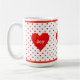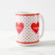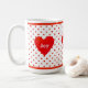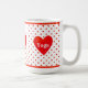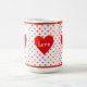 Vacker mugg med hjärta, röda prickar och personlig glädje, kärlek, yoga-text.
