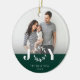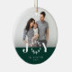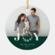 En minnesvärd souvenir ornament med kundens foto med vit glädje överlägg och färg block stapel i färg längst ner. Baksidan har en koordinerande enfärgad färg och text område för ytterligare meddelande.