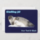 En mamma ringsäl och unge på en isflak. Isländsk text som lyder "Gleðileg jól" (God Jul) visas i lysande blå och vit färg.