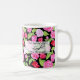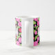 Den robustt keramiska kaffemuggen med ett härligt vattenfärgromönster på en svart bakgrund med bibelscripture, "glädjen av lorden är min styrka", från den Nehemiah 8:10. En perfekt långt som ska startas din dag!