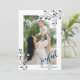 Skicka denna vackra julkort till dina vänner och familj med en vinterblomme ram med ett foto, ett "glädjerikt" manus, familjen namn och år, och lägg till fyra bilder med ditt personliga meddelande på baksidan.