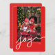 Detta moderna, men klassiska fotoholiday-kort är det perfekta sättet att skicka glädje denna höjdsäsong. Ordet "glädje" i en handskriven teckensnitt skickar ditt meddelande om glädje denna högtid eller jul.
