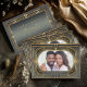 I elegant bröllop Spara datumkortet ingår i en sofistikerad konsthistoria för bröllop, som innehåller lyxiga ramar och tungrodda och skarpa detaljer om guld. Den klassiska designen visar en glamorös vintage charm, med en färg-palett med svarta, glödande guld och varma grått-toner. Med hjälp av ornate-informationen kan du lägga till en del sofistikering till det här tidslättslösa kortet. Lägg enkelt till foto- och händelseinformation med hjälp av den angivna mallen. Sök i ID1033 om du vill se alla produkter i den här bröllop-sviten.