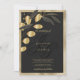 En chic svart monogram initialer med snyggt elegant svart och guld löv blommigt bröllopsinbjudningar. Den här enkla inbjudan till bröllopsbröllop i guld är perfekt för alla klasssofistikerade chic. Den här designen är perfekt för en händelse i trendig och elegant party. Anpassa den här designen med information om meddelande och personlig. Alla designer skrivs ut.