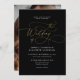 Glam Black Guld Script Calligraphy Photo Bröllop Inbjudningar