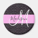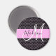 Glam och gigantisk svart och rosa metallisk bikaka är mönster monogram namn och initial magnet. Ditt eget namn och monogram är skrivna i ett skript med svart och vit elegant med rosa bakgrund. Du kan ändra texten färg och teckensnittet stil och storlekt med hjälp av anpassningsalternativet.