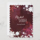 Blomkittning av vita blommor + rustik texturerad bakgrund i djup vin-röd + sassy-snurrar och underbart snöflingor designad på anpassningsbar Inbjudningskort för möhippa. Vackra och vismliga inbjudningskort perfekt för ditt speciella firande på vintern! (Du hittar de bröllop-essentialer och -favörer som passar i den här butiken, Möhippa himlen. Kontakta ujean4791@gmail.com för anpassningsbar och/eller samordning av bröllop-kontorsmaterial.)