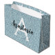 Girly och Glam Blue silver glitter gnikles monogram namn och första presentsäck. Anpassa med ditt eget namn i ett svart skript för elegant och ditt monogram initialt i vitt. Du kan ändra texten färg och teckensnittet stil och storlekt med hjälp av anpassningsalternativet.