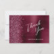 Den här eleganten är ett modernt bröllop-tack som du har ett kort med en fingerad diamant glitter gräns på en burgundisk faux borstad bakgrund från metall. Texten är i modernt handskriftsskript och sans serif-teckensnitt, med blanksteg för gästernas namn och svar.