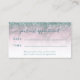 This elegant modern appointment card features a background image of burgundy marble, framed on the top by a teal blue faux glitter border. Personalize it with your name in teal handwriting-style script and your business information in sans serif font. A white gradient screen helps make the text pop. On the reverse, the words "your next appointment" appear in teal handwriting script, along with spaces for the date and time. Edit the italic text at the bottom with additional policies or information for your clients or customers.