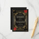 Elegant Casino Royale och Great Gatsby-temat kortdesign. Den har vintage art deco-stil, en ram i 1920-talets gamla Hollywood med spelkortssymboler (simulerar spelkort). På baksidan falskt guld Art Deco-mönster, initialer och spelkortssymboler. Använd verktyget Anpassa för att lägga till din information. För mer, besök min Casino Art Deco Gold Collection.