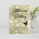 En svart katt, och skriv accents denna Halloween-bröllopsinbjudan på en glatt guld-bakgrund med båda ljus, skapar den här inbjudande perfekten för Halloween-Bröllop med lite gnistra.