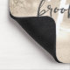 This elegant personalized mouse pad features a monogram and first name in modern charcoal gray and white script on a sparkly background of champagne gold faux foil and glitter.