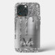 Elegant, modern, giftig silver grått glitter droppar grått anpassningsbar metall personlig och monogrammad namn. Den här designen har silver grått glitter gnistra-droppar på grått borstad metall-bakgrund med anpassningsbar personlig monogram initial och första namn-textmall. Perfekt feminin gåva till flickor och kvinnor som kärlek söt trendig glam sak. Kontakta mig om du behöver hjälp eller matchande artiklar.