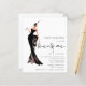 Glam Dam Trendig Script 21:a födelsedagen Party. Ett budgetmässigt prist mindre än 4,5 x 5,6 tum alternativ. Finns i ett SEMI GLOSS 110 lb-kort LAGRAR som är standardalternativet (rekommenderas för inbjudningar, liknande ett vykort) ELLER ett SATIN AVSLUTAR 80 lb PAPPER LAGRAR (perfekt för höljen). En illustration av ett glamoröst dam i svart och tjugoett finns i ett handskript för funkyn stil. Anpassa enkelt resten av texten till dina egna detaljer.