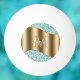 Anpassa stort guld monogram och namn i vitt skript på guld-vågen med vita diamanter på teal.