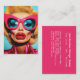 En slående, hög mode-porträtt av en glamorös diva med omfångsrika blonda hår, överdimensionerade solglasögon av shock rosa-katt-öga, fet rött läppar och elblåögd. Det ser häftigt ut, retro, och opassande fantastiskt fantastiskt - en popkonsdröm i levande färg.