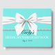 Glam Fancy Tiffany Theme Bröllopsfest Gästbok för bruden att vara som har allt. Det här är en del av vår eleganta akvablå tiffany tema födelsedagsfest samling. Hitta allt du behöver för den perfekta teal, pärlor och vita båge hela vägen ner till en liten svart klänning! Använd den här gästboken för en bröllopsfest, jubileums födelsedag eller någon speciell händelse.