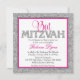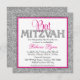 En modern Bat mitzvah partiinbjudan. Med faux silver glitter-design med rosa och svart accenter. Mönster är platta tryckta bilder - INTE FATUAL GLITTER.