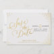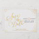 Glamor faux guld glitter-hand som skrev kalligrafi sparar datumutformningen och guld-punkter konetti mot benvit bakgrund, söt shimmer faux metallic guld glitter-effekten, modern, chic, elegant och klassy, perfekt för vintage bröllop, konst deco bröllop eller vinterbröllop. Redigerbar bakgrund färg för att matcha bröllop temat färger. Anpassningsbar din egen spara datumkortet för din bröllopsinbjudan. Se alla matchande delarare i den här luxe guld glitter-kalligrafisamlingen nedan.