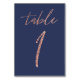 Glam Glitter Rose Guld och Blå Bröllops Bordnummerkort