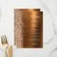 Den här elegantens moderna bröllop-meny har en faux diamant glitter gräns på en bränd orange faux borstad metall-bakgrund. Anpassadet kombinerar vitt handskriftsskript och sans serif typsnitt. Den brinnade orangen metall och glitter upprepas på baksidan.