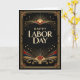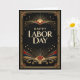 This elegant Labor Day design captures the grandeur of classic Art Deco celebration with a distinctly patriotic tone. Against a deep black backdrop, luminous gold lettering proclaims “Happy Labor Day,” framed by intricate geometric borders and radiant starbursts. Fan-shaped motifs accented with red evoke progress, pride, and American heritage, while the symmetrical layout conveys strength, balance, and refinement. The rich contrast and luxurious detailing make this artwork ideal for honoring the dedication and achievement of the workforce.