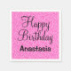 Personlig Grattis på födelsedagen-napkin med gnistra shock rosa och svart elegant. Du kan enkelt lägga till valfri namn och ändra färg och typsnitt för namn med hjälp av anpassningsalternativet!