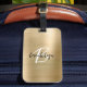 Glam Guld Brushed Metall Black White Monogram Bagagebricka