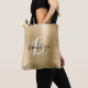Den här elegantens personlig till väskan har ett monogram och första namn i det moderna svartvita skript på en glam guld borstad bakgrund i metall.