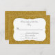 Glamorerat responskort från bröllop i en guld glitter tittar bakgrund. Ett dekorativt guld-tonstensat vitt textområde, mitten på kortet, har redot svart text för att anpassa sig.