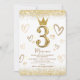 Glam Guld Glitter Krona 3:e födelsedag Party Inbjudningar