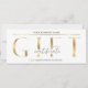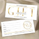 Elegant Business Gift-certifikat i vitt och guld med plats för logotyp och företagsinformation. Perfekt till använda som personlig-spa eller skönhetssalonpresentkort för ditt lash, din borw eller nagel pub. Faux guld-effekterna och det moderna typsnitt tillför den här företagsverifikationsmallen en luxurös känsla.