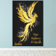 Öka ditt utrymme med detta imponerande 40 x 60-tums uttänkta kanvastryck med ett varsamt guld-foenix mot mousserande silver glitter. Monogrammet elegant guld ger en personlig beröring och skapar en slående kontaktpunkt som förkroppsligar motståndskraft och förlossning. Med sin dramatiska storleka och eleganta svarta bakgrund ger det här kanvastrycket både storhet och sofistikering till din dekoration och skapar den till ett utmärkt biet för vilket rum som helst. Perfekt för dem som försöker blanda lyx med meningsfull konst.
