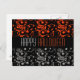 Det här anpassadet Halloween-vykort har en glam-orange som är uppklippt i svartvitt mot svart bakgrund.