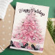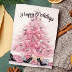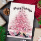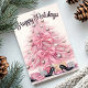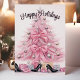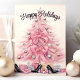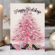 Fira helgdagarna i stil med detta chic-kort som innehåller en glamorös rosa Julgran som är dekorerad med bogar och prydnadsföremål. Högklackar och vackert inslagna gåvor ger en moderiktig perfekt för att skicka semesterhälsningar till vänner och familj som kärlek en luxe och trendig estetiskt.