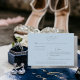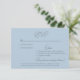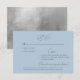 Blått Bröllop OSA-kort från himmel. Tre Entree-alternativ. Webbplatsalternativ för OSA. Modern teckensnitt. Silver text. Metallisk baksida i silver.