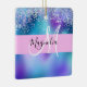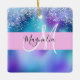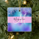 Glam holoGraph sjöjungfru glitter sparkles monogram namn och initial keramisk prydnadsprodukt. Ditt eget namn och monogram är skrivna i ett skript med en ljus rosa bakgrund som är skrivet i eleganten. Du kan ändra texten färg och teckensnittet stil och storlekt med hjälp av anpassningsalternativet.