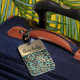 Blå och svarta leopardpunkter på en liten guld-bakgrund med ett halsband i guld gräns där ovan är ett glansigt kant i guld där du kan anpassa det med en namn, en fras eller logotyp, eller så kan du behålla det som i ord "Chef Dam". Chic glam leopard-tema.
