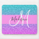 Lila, lilak, akvarier och turkos sjöjungfru glitter är glam- och glitter av gradient monogram namn och inledande musknapp. Ditt eget namn och monogram är skrivna i ett skript med elegant och rosa bakgrund. En perfekt födelsedag eller julklapp!