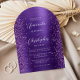 Den här eleganten är en modern bröllopsinbjudan med lila faux glitter side gräns. Anpassadet kombinerar vit handskrift, tryckplåt och kursivt typsnitt på lila faux borstad metall bakgrund. Baksidan har en passande utformning av glitter och borstat metall.