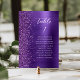 Det moderna bordsnumret i bröllop har ett lila faux gräns i glitter. Detta kort är det lämnat kant i eleganten. Ord "bord" och bordsnumret visas i ett vitt handskript på en lila faux borstad metall bakgrund. Lägg till namnen för de gäster som tilldelats varje bord.