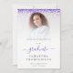 Glam Lila Glitter Photo 2024 Studenten. En aning gnistra med elegant faux gräns överst på båda sidor. Student finns i ett snyggt-skript med dekortecken. Anpassa enkelt texten efter behov, även på motsatt sida, och byt ut exempelbilden mot din egen. Om du har en sådan contemporary fungerar ett foto med en ljusbakgrund bra om du vill behålla den minimalistiska färgadens utseende.