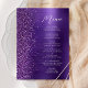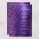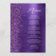 Den här elegantens moderna bröllop-meny har en faux diamant glitter gräns på en lila faux borstad metall. Anpassadet kombinerar vitt handskriftsskript och sans serif typsnitt. Lila metall och glitter i borstad utformning upprepas på baksidan.